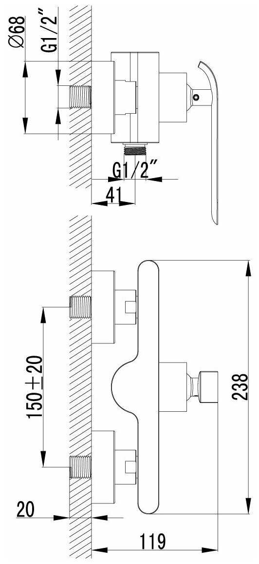 | Комплектация : | верхний душ, держатель лейки, лейка, смеситель, шланг, эксцентрик |