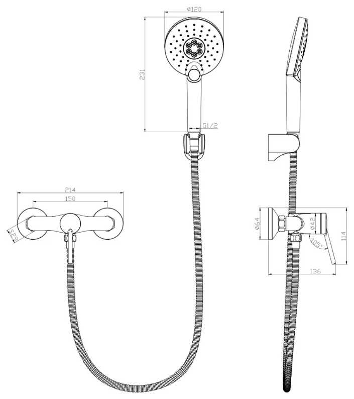 | Комплектация : | лейка, смеситель, шланг |