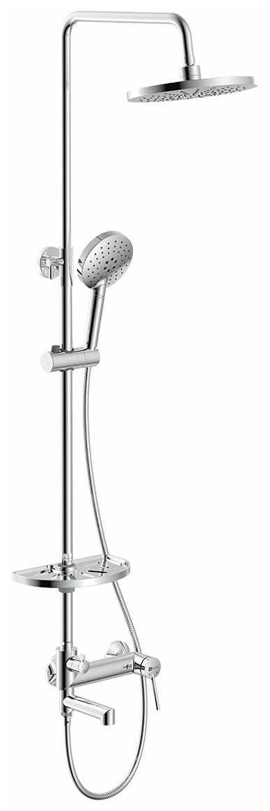 | Комплектация : | верхний душ, держатель лейки, душевая стойка, душевая штанга, излив для набора воды, лейка, мыльница, набор эксцентриков, отражатель, полочка, прокладки, ручной душ, смеситель, шланг |