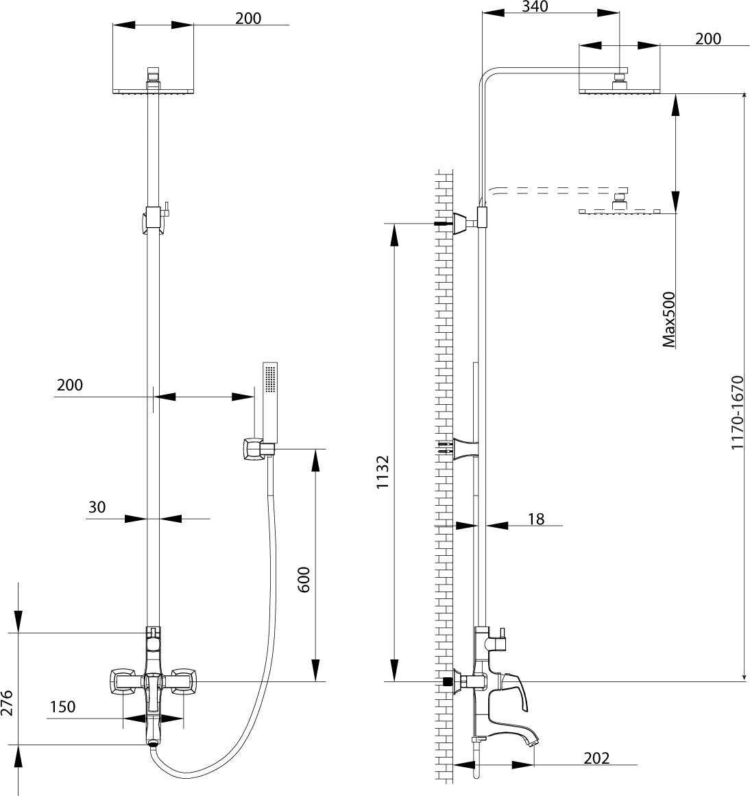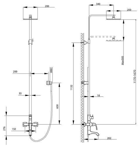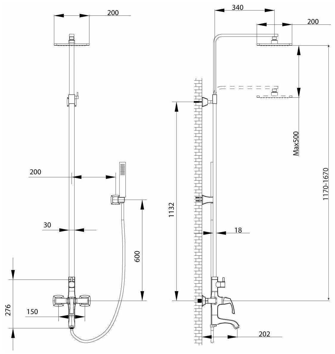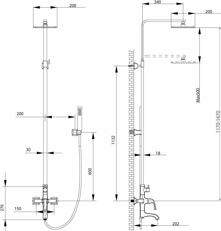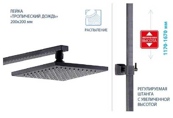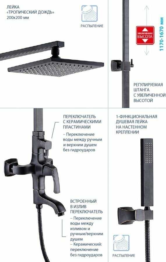 - регулируемый верхний душ