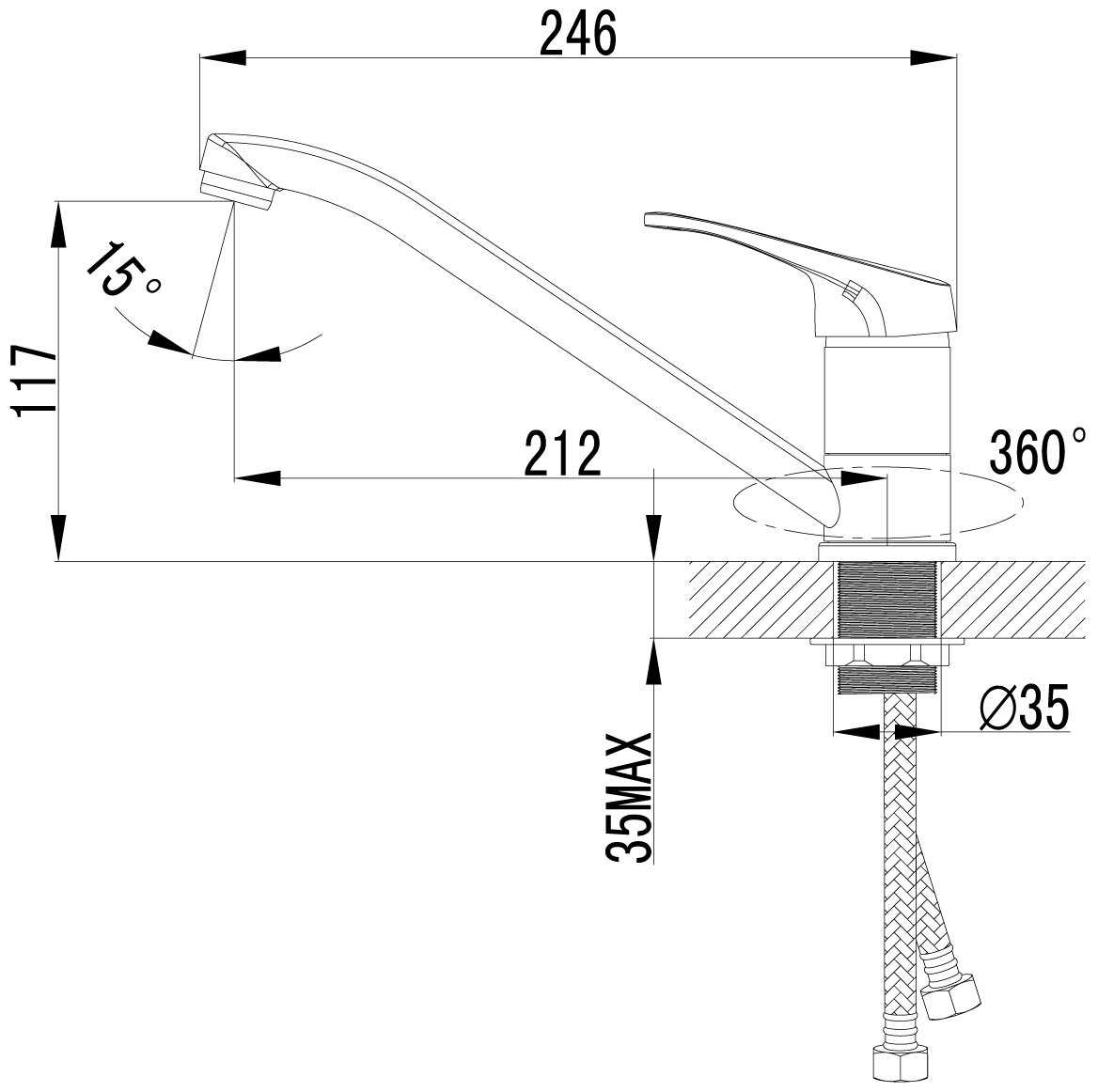 - Гибкие подводки в комплекте упрощают подключение, минимизируя время на подготовку и обеспечивая надежное соединение без подтеков.