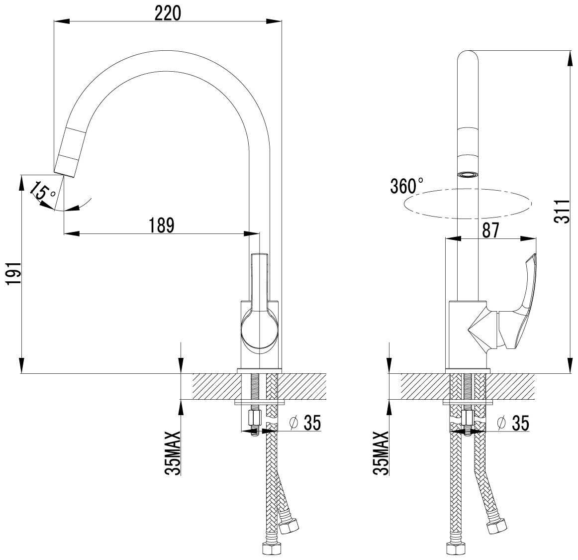 - + Просто установить, шланги в комплекте, поворачивается легко
