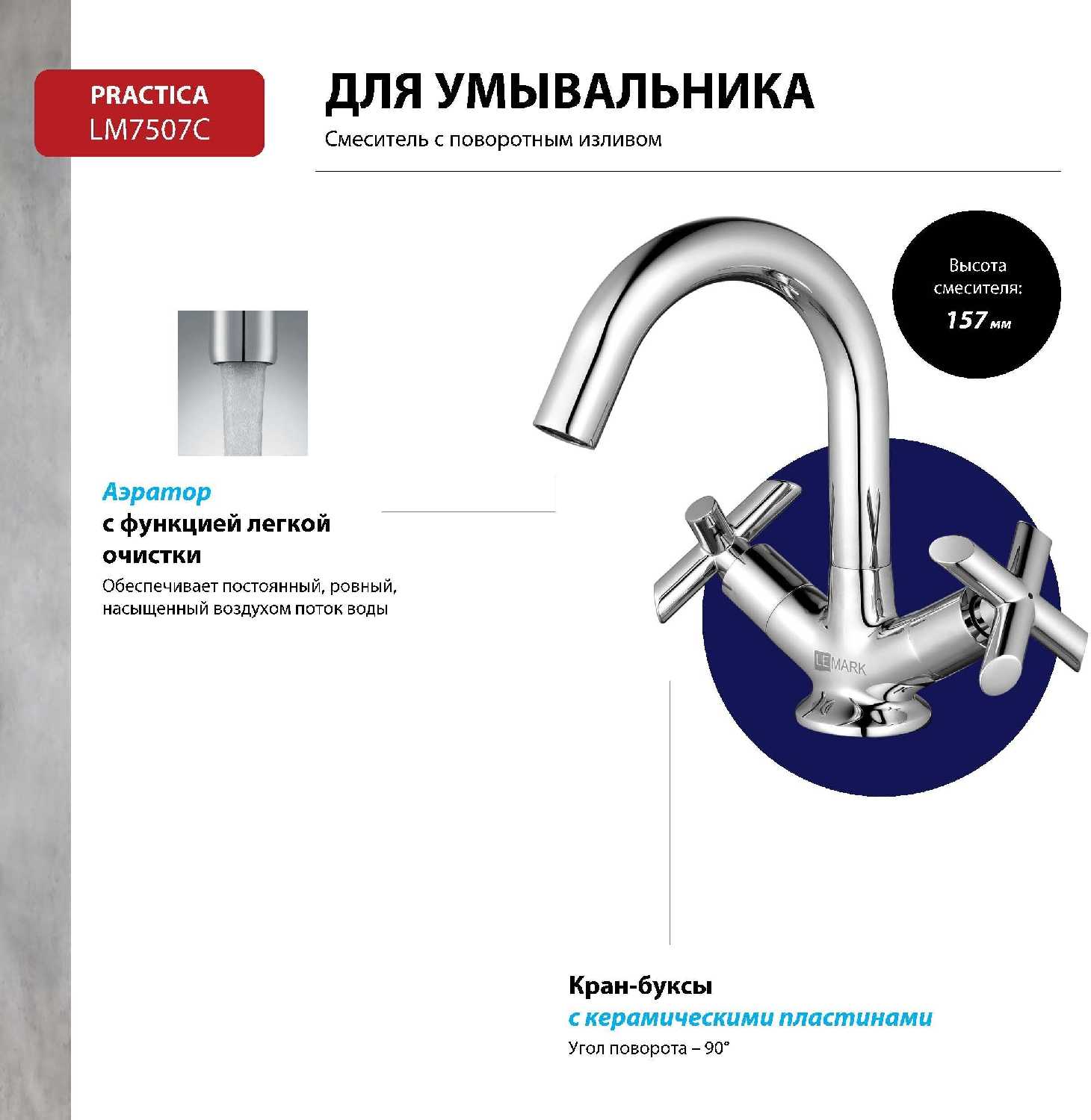- + отличный кран для маленькой раковины с поворотным изливом