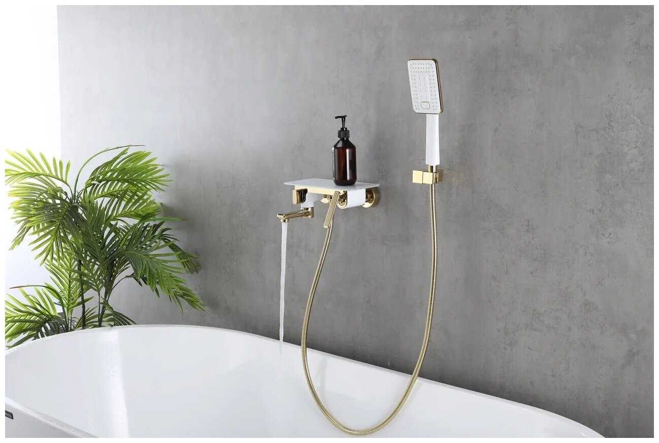 Характеристи Lemark Смеситель для ванны с поворотным изливом, белый/золото "Миста" LM6414WG