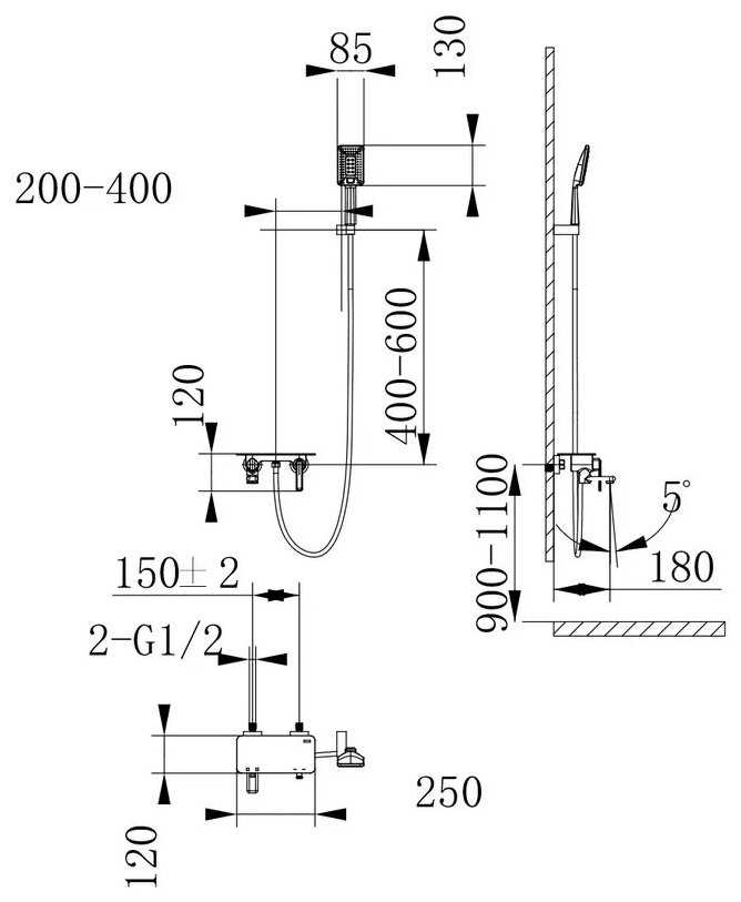 | @Комплектация : | шланг 1, 5 м, 3-функциональная лейка 85x267 мм, настенное поворотное крепление для лейки |