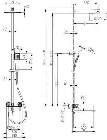 Комплектация : | верхний душ, держатель лейки, душевая стойка, излив для набора воды, лейка, ручной душ, смеситель, шланг |