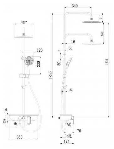 3. Высота штанг. Обратите внимание, этот душ для очень высоких помещений