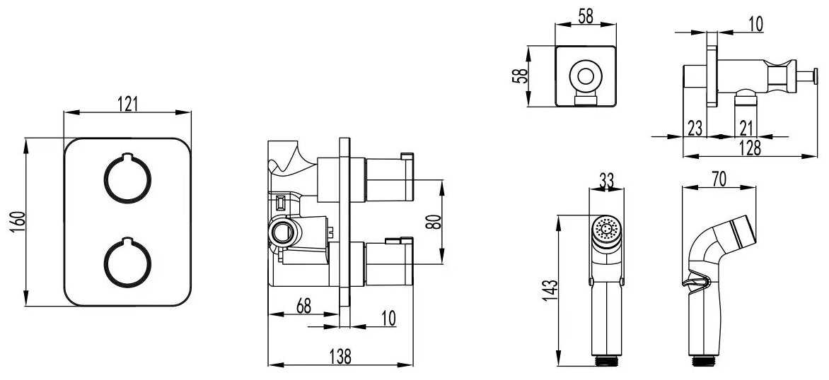 Комплектация : | гигиенический душ, держатель лейки, лейка, смеситель, шланг |