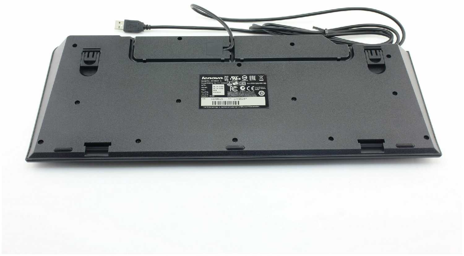 По дизайну и ходу клавиш напоминает Mitsumi. Символы контрастные. Белые символы нанесены краской. Красные символы наклейки. Есть ножки, можно выставить два угла наклона. Клавиатура тяжёлая, пластик толстый - прогибаться под нагрузкой не будет. Шум от нажатия клавиш умеренный, глухой. Есть канал для прокладки кабеля и вывода по центру, слева, справа.