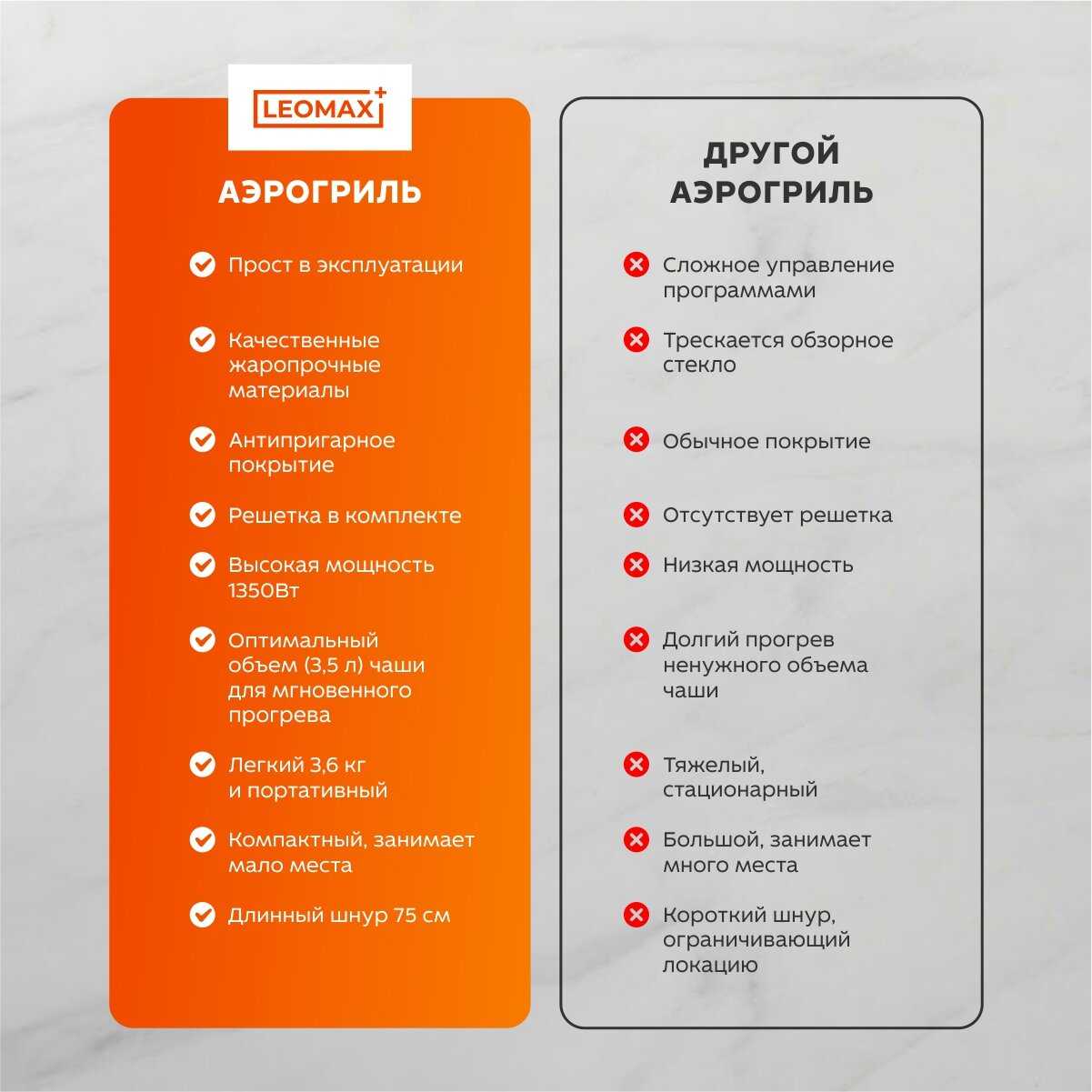 Плюсы по отзывам пользователей - Почему стоит купить Leomax Аэрогриль 3,5 л?: