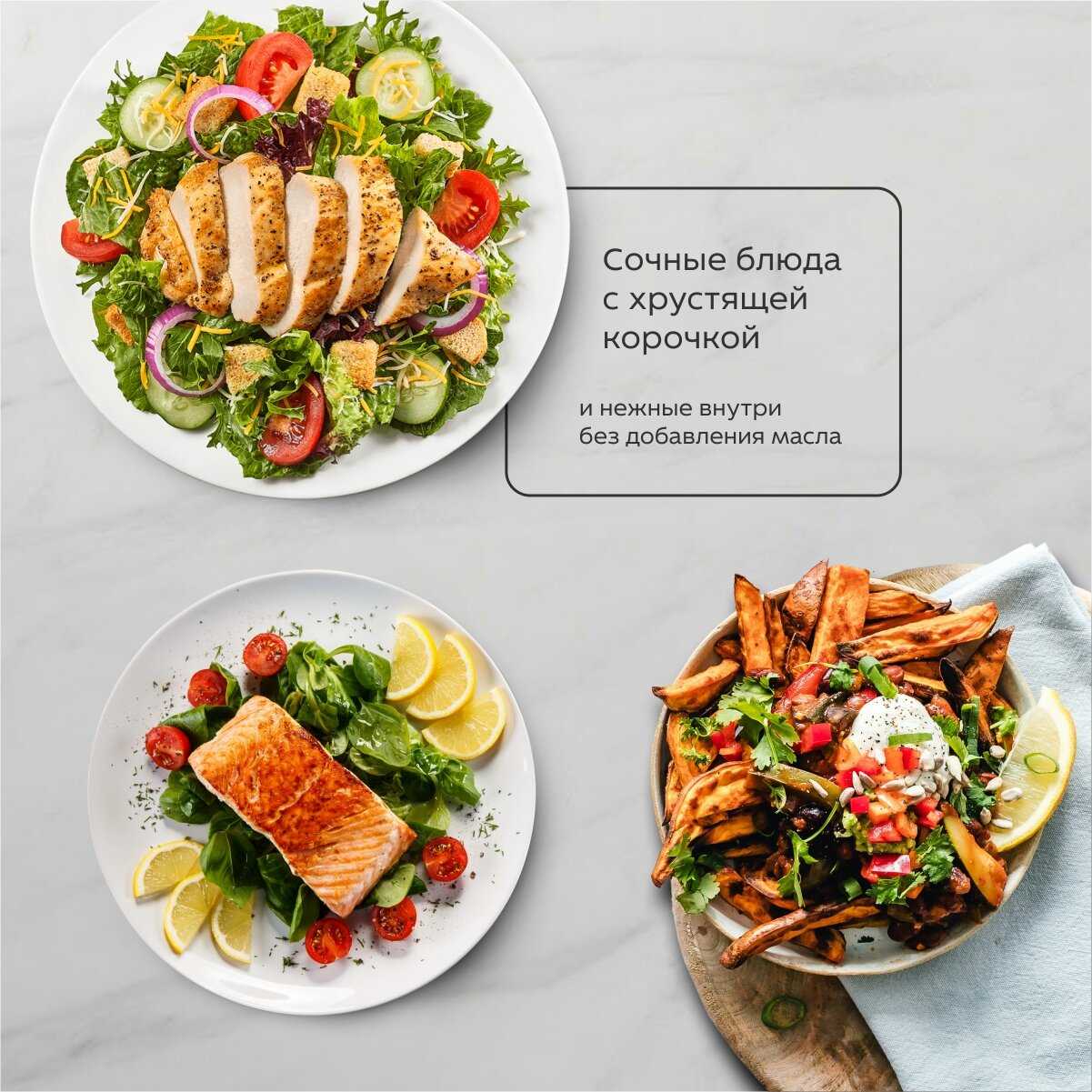 - Конвекционный поток воздуха обеспечивает равномерное обжаривание со всех сторон.