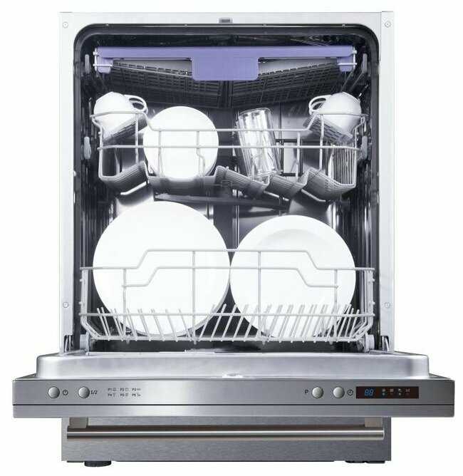 - + Отлично моет посуду. Вместительная. Огромный плюс, полка для столовых приборов.