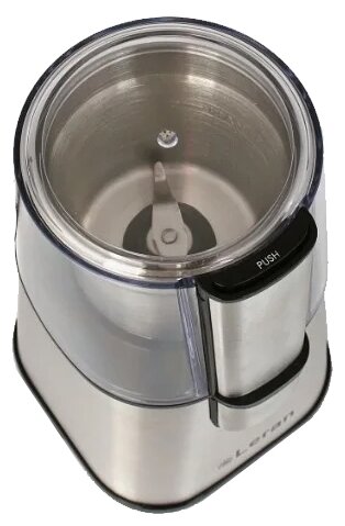- + Состоит из отдельных частей .Основа, чаша для помола, прозрачная крышка