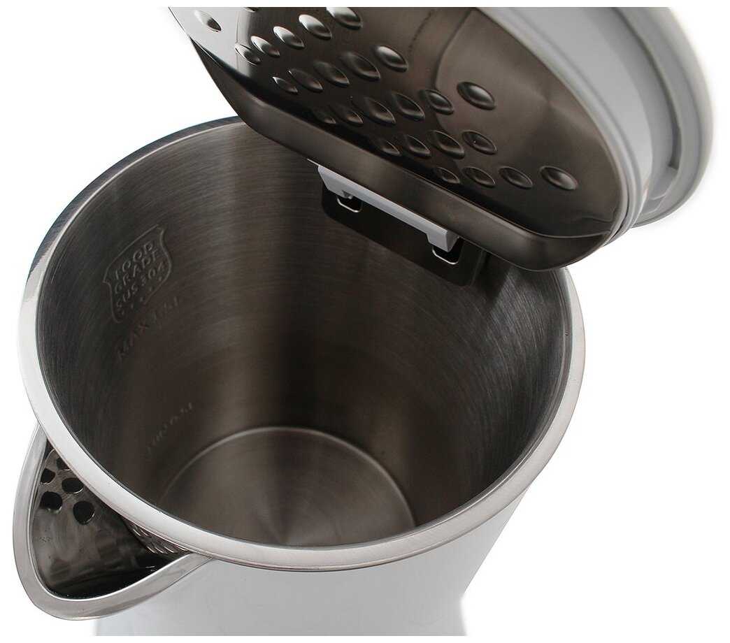 - + Чайник понравился. Внутри полностью металлический. Легко настраивается на температуру от 40 до 100 каждые 10 градусов. Доводит до нужной и держит, также можно отключить подогрев. Пока нагревается, на дисплее отражается ход температур. По окончании нагрева 2 довольно громких звука. Сама база нагрева сделана крепко, контакты прочные. Внутри нанесены мерные отметки для воды.