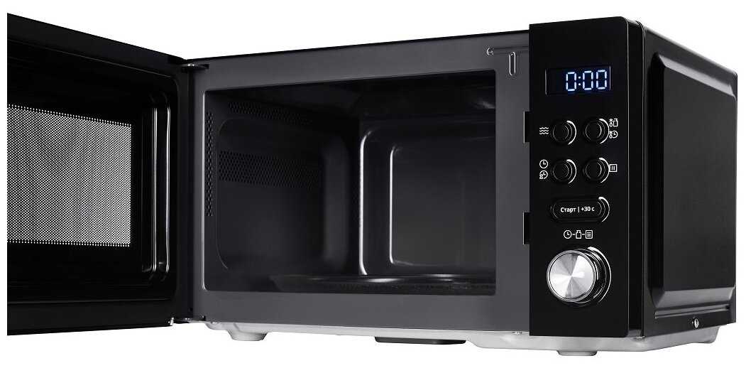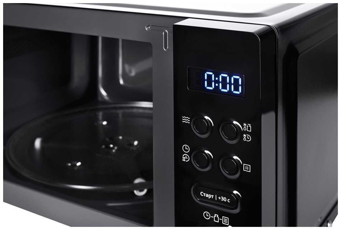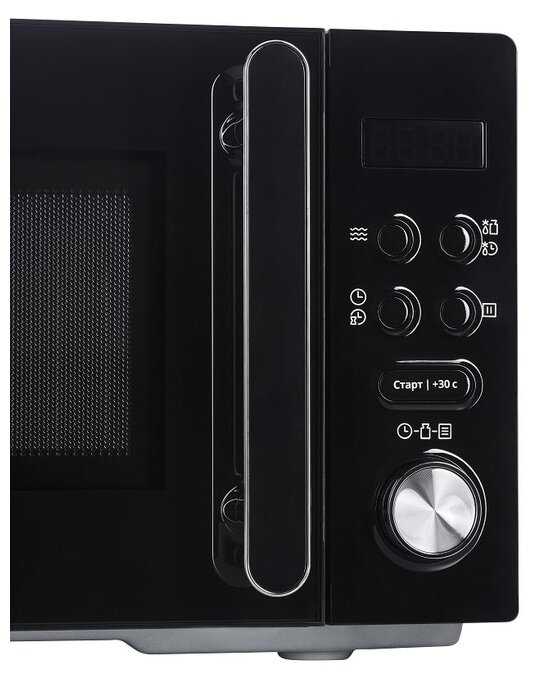 Микроволновка у нас эта уже пол года, были требования изначально, чтобы была кнопка быстрого старта по 30 с., размораживала и была ручка для открывания. У данной модели все в наличие, и работает все отлично, разморозка просто супер, она не нагревает продукты а действительно размораживает. Греет еду быстро, засчет того что мощная . плюс есть возможность установить часы , что на кухне очень удобно.
