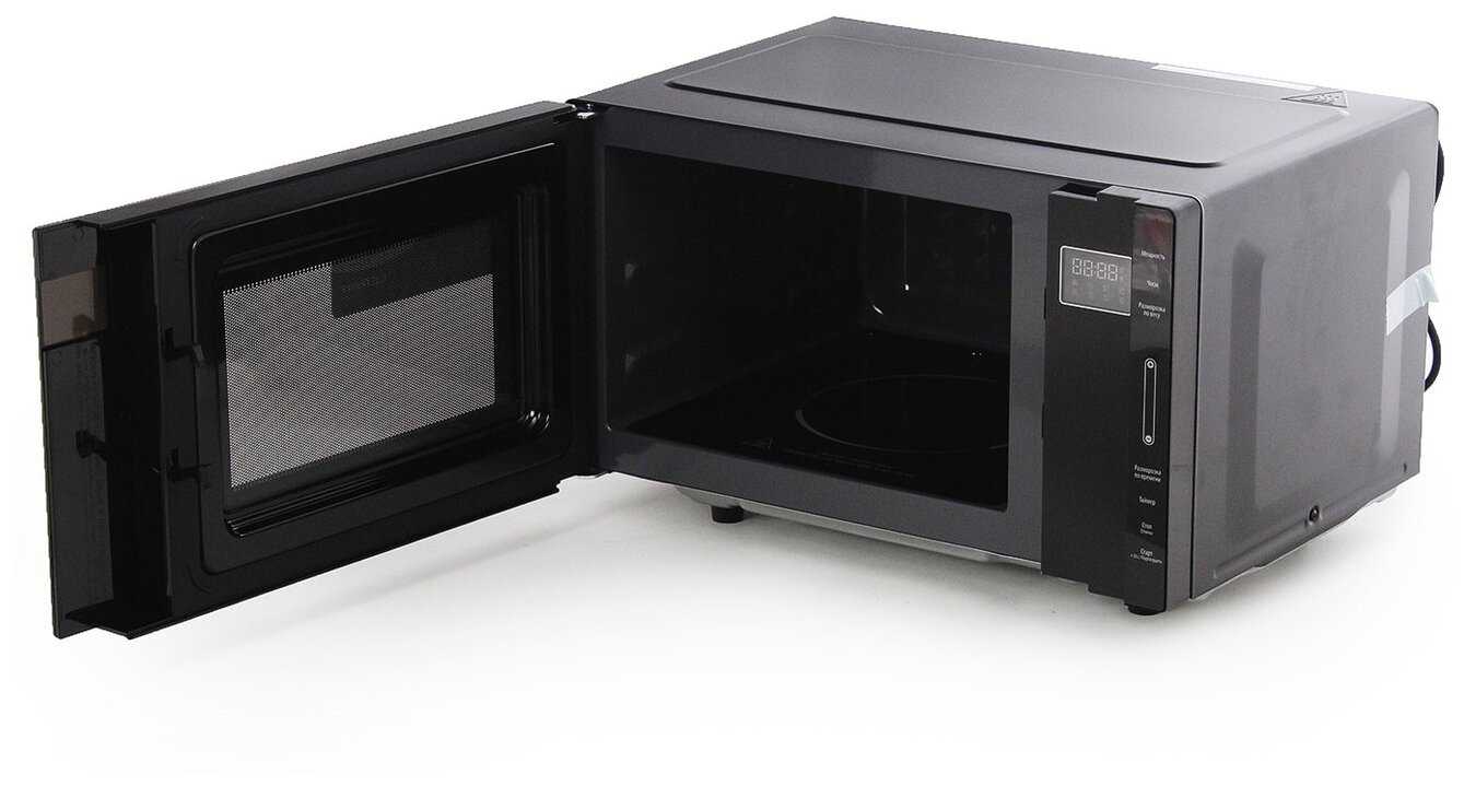 - + Нет тарелки, стильная микроволновка, дверца легко открывается