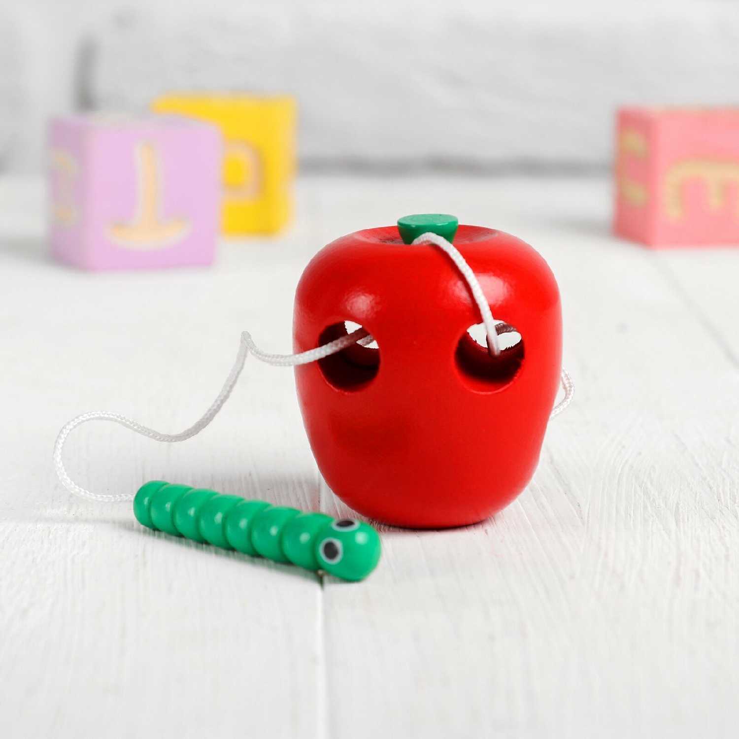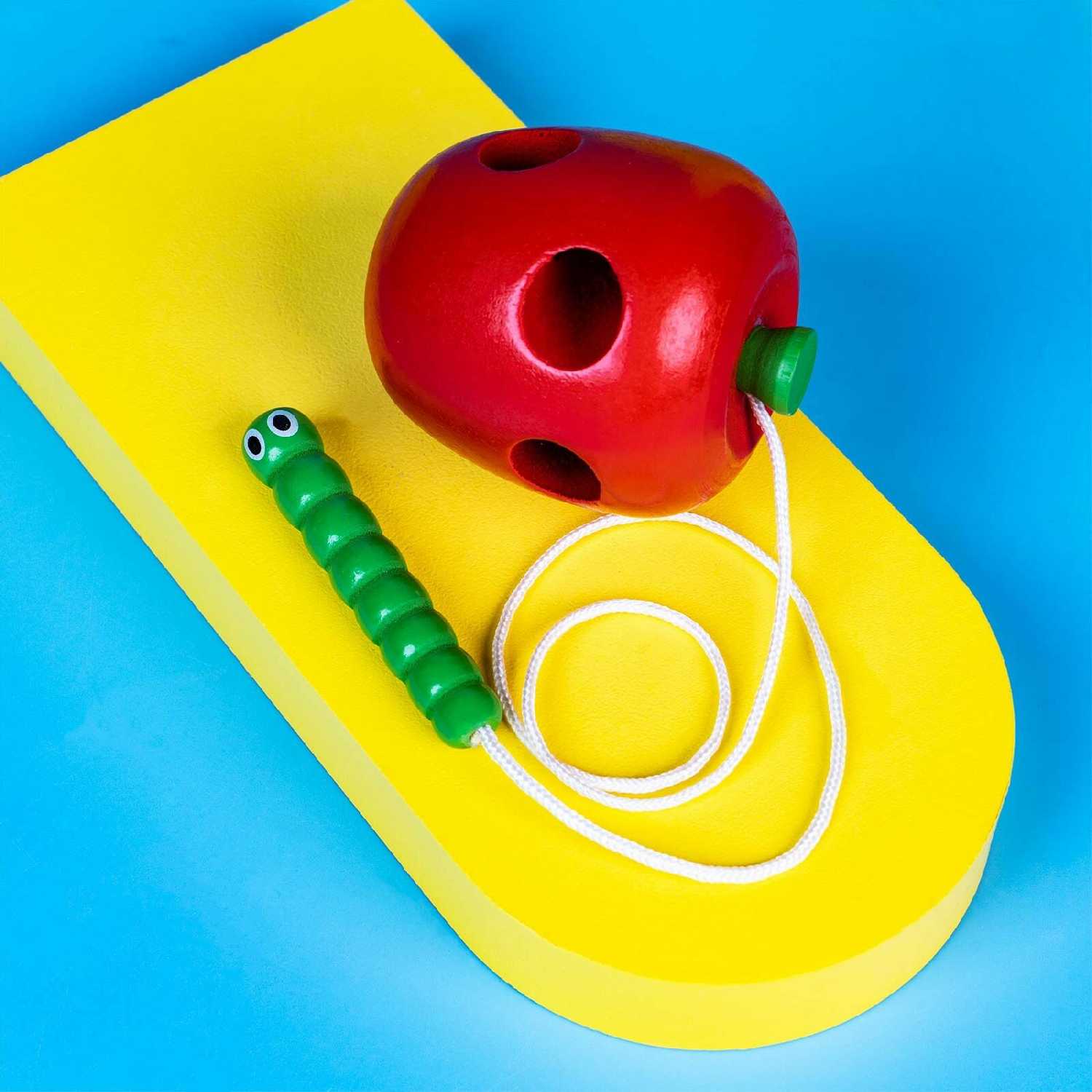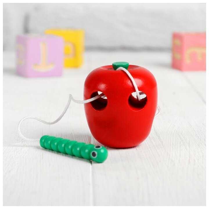 - + Игрушка из дерева, небольшого размера - в ручку ребёнка ложится идеально. «Иголка» в виде гусеницы достаточно толстая и малышу удобно ее брать и вставлять в отверстие, само отверстие гораздо больше и эта гусеница легко проходит, без усилий. Сыну год и семь, как распокавали игрушку так с ней целый час и бегал, и пожевал и покусал и нитку успел запутать, и нанизал все яблоко вдоль и поперёк. Короче незамысловатая, казалось бы, игрушка, а мы оооочень довольны!