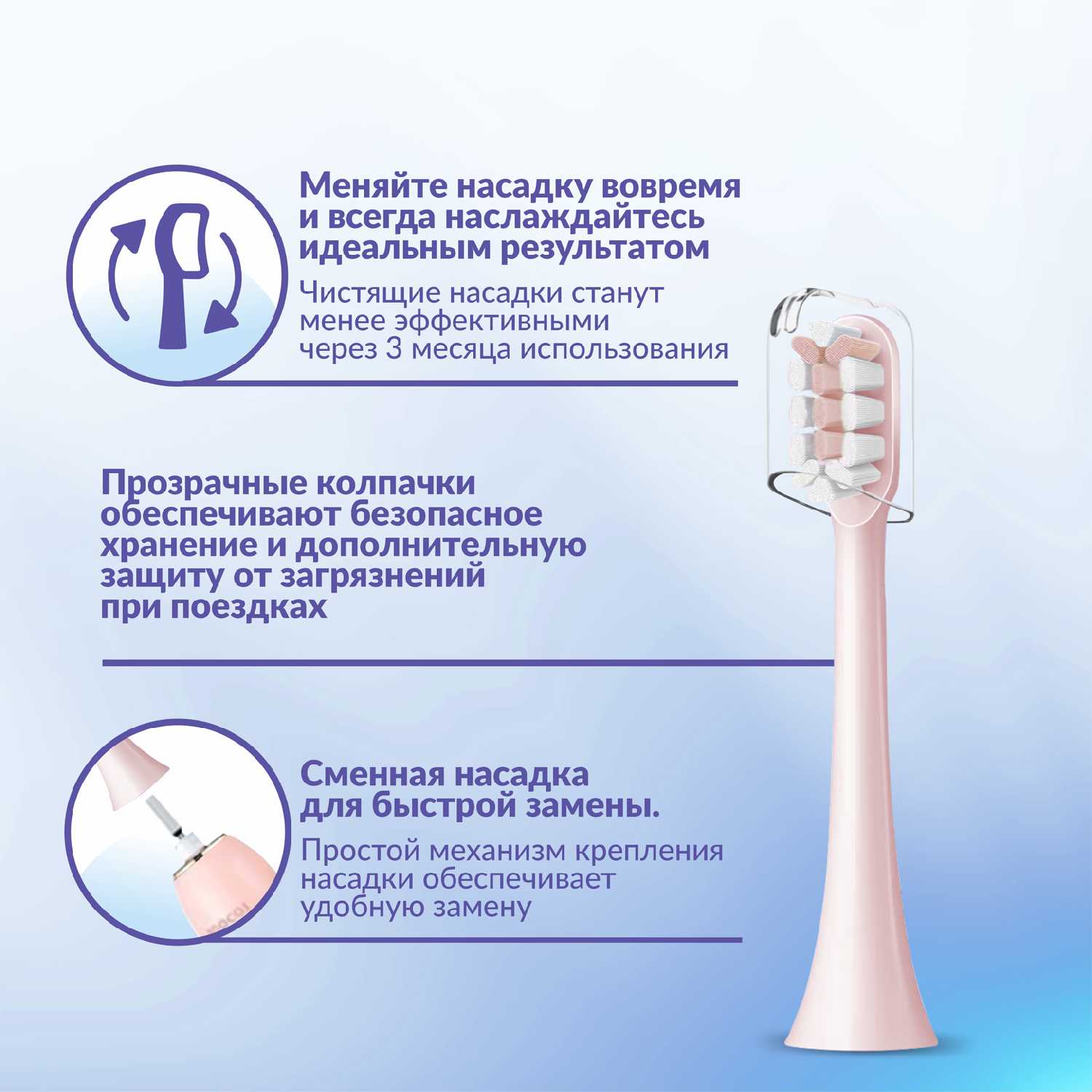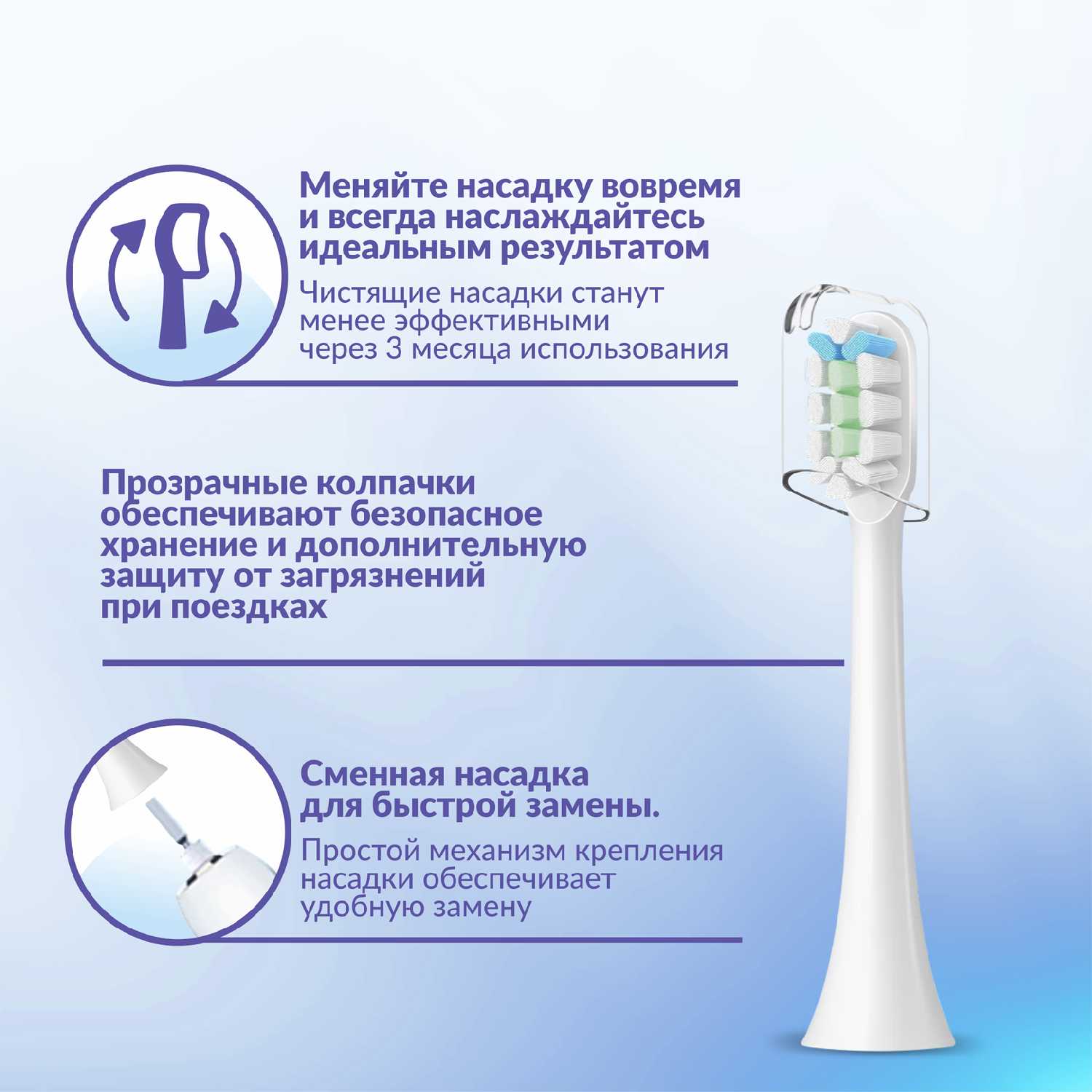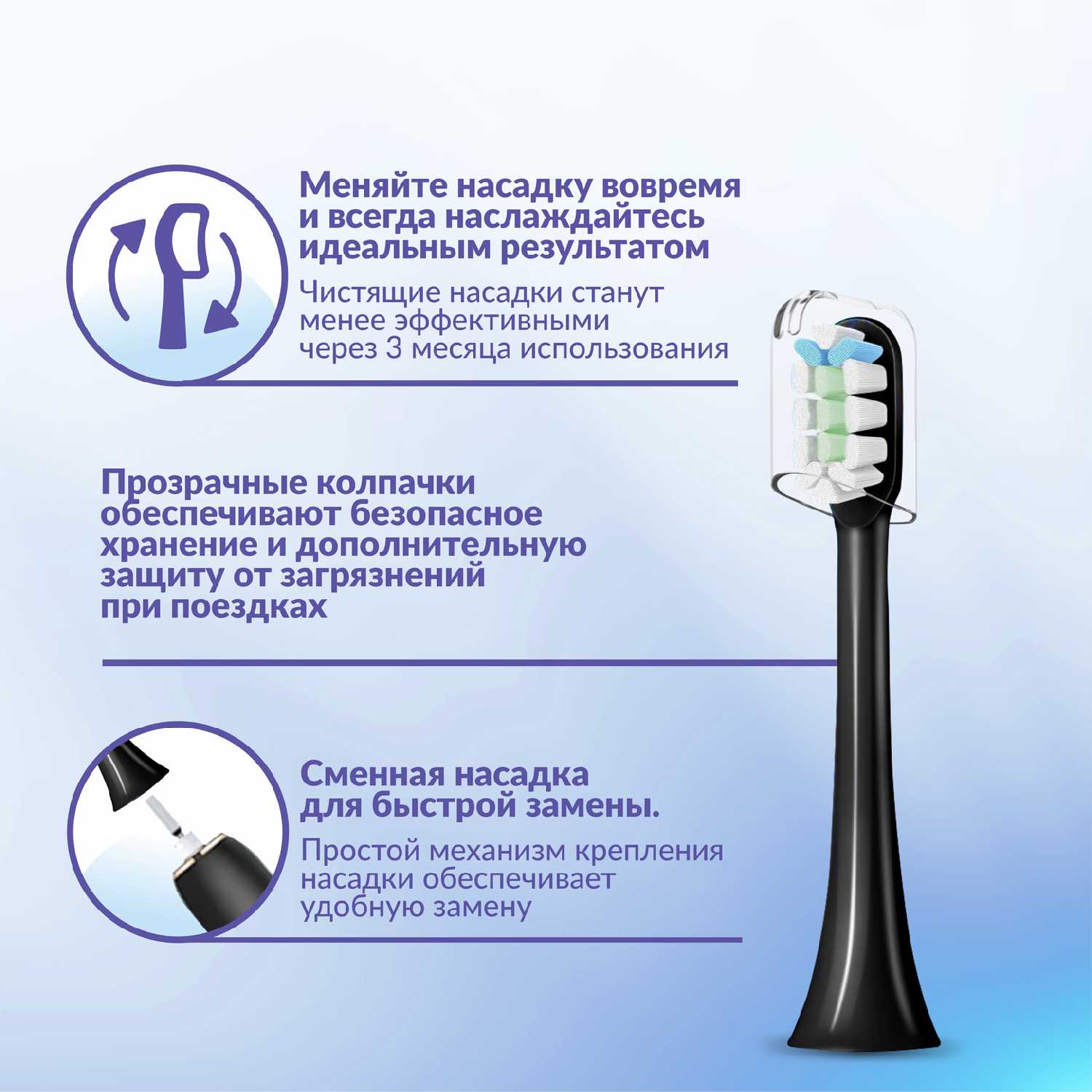 Тип насадки : | для ежедневной чистки, для отбеливания, для удаления зубного камня |