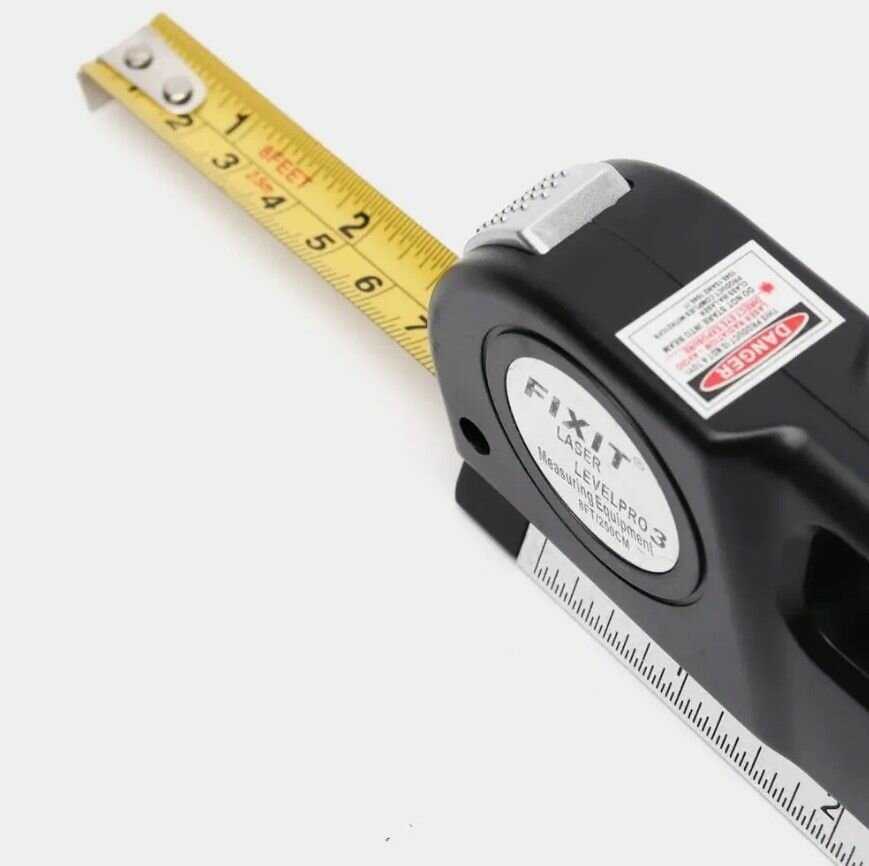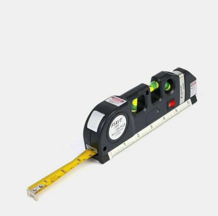 - Сочетает три инструмента в одном корпусе: лазерный уровень с проекцией вертикали/горизонтали/перекрестья, рулетку 2.5 м со стоп-фиксацией и пузырьковые уровни.