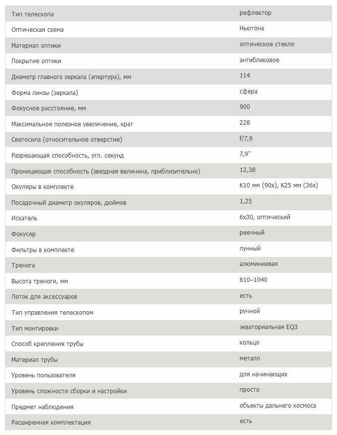 - + Хорошее качество исполнения, монтировка EQ3 даёт удобство регулировок, хорошая картинка, простая сборка. Вызывает восторг всех кто в него смотрит)