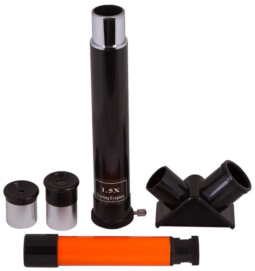 Можно использовать как телескоп и как подзорную трубу. Два окуляра в комплекте, а также линза Барлоу и тренога.