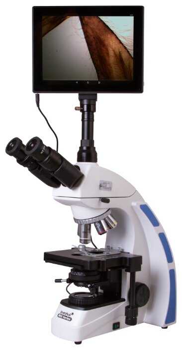 окуляры широкопольные с диоптрийной коррекцией, объективы планахроматические, скорректированные на бесконечность, межзрачковое расстояние 48-75 мм, диапазон перемещения предметного столика 75/50 мм (перемещение препарата в горизонтальной плоскости), общий ход фокусировки 48 мм, диоптрийная коррекция окуляров ±5 D, конденсор Аббе N.A. 1.25 с ирисовой диафрагмой, коаксиальный механизм точной и грубой настройки, тип лампы подсветки - 5 Вт, переменный ток 85–230 В, коллектор, освещение по Келеру, разъем камеры USB-B, чувствительный элемент 1/2.33", размер пикселя 1.335x1.335 мкм, спектральный диапазон 380–650 нм, баланс белого - авто/ручной, контроль экспозиции - 0.2–2000 мс, ПО LevenhukLite, программные возможности - размер изображения, яркость, время выдержки, системные требования Windows 8/10/11 (32 и 64 бит), macOS X, Linux, до 2, 8 ГГц Intel Core 2 и выше, 2 ГБ оперативной памяти, порт USB 3.0, CD-ROM, максимальное разрешение 4632x3488 пикс
