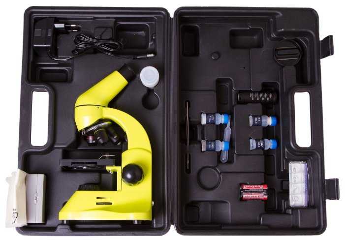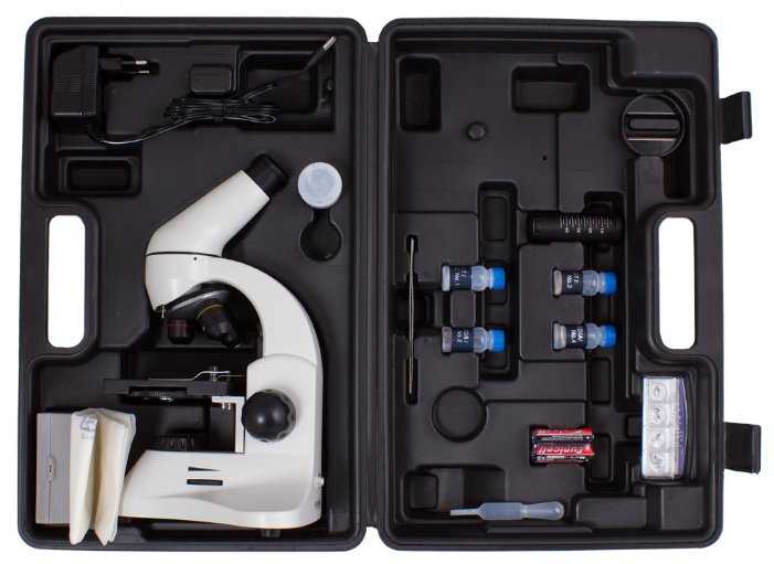 | Подробная комплектация : | микроскоп, объективы: 4х, 10х и 40хs, окуляр wf10x, линза барлоу 2x, предметный столик с зажимами, диск с диафрагмами, конденсор, встроенные нижний и верхний осветители на светодиодах, сетевой адаптер 220 в, 50 гц, пластиковый кейс, набор для опытов levenhuk k50, инструкция по эксплуатации и гарантийный талон |