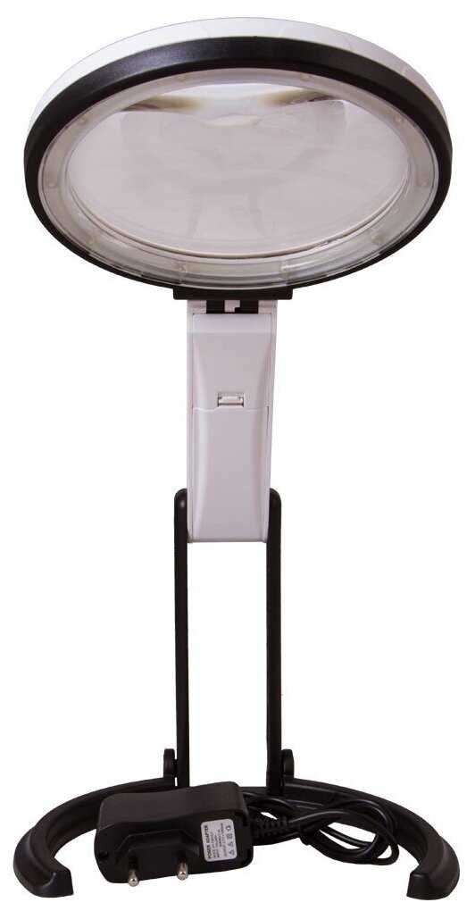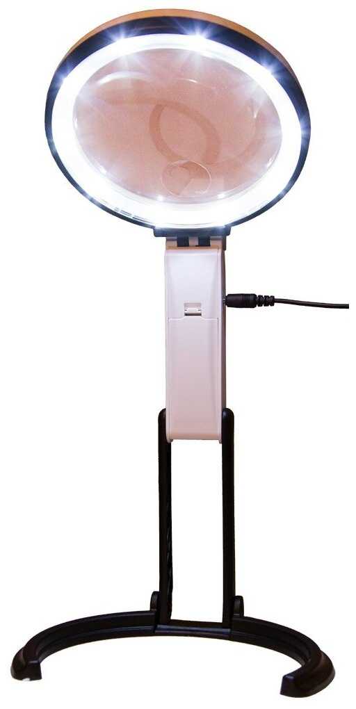 - + Очень удобная лупа, довольно яркая подсветка. Есть блок питания