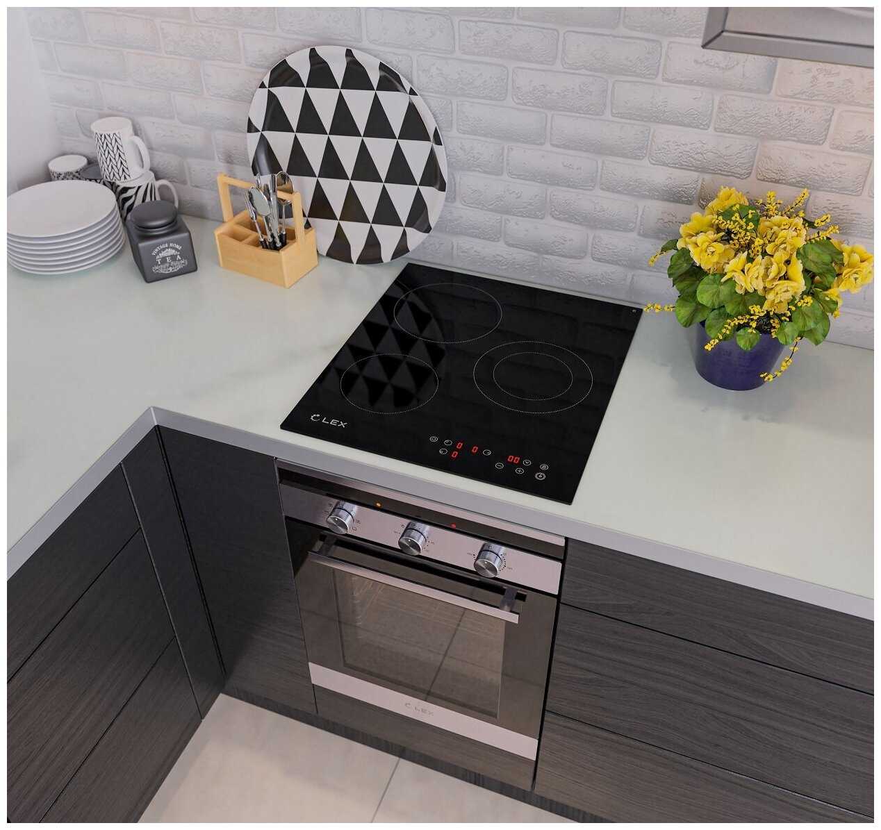 При ширине столешницы 600, глубина плиты впритык, даже врезная розетка мешает установке, пришлось розетку переносить.