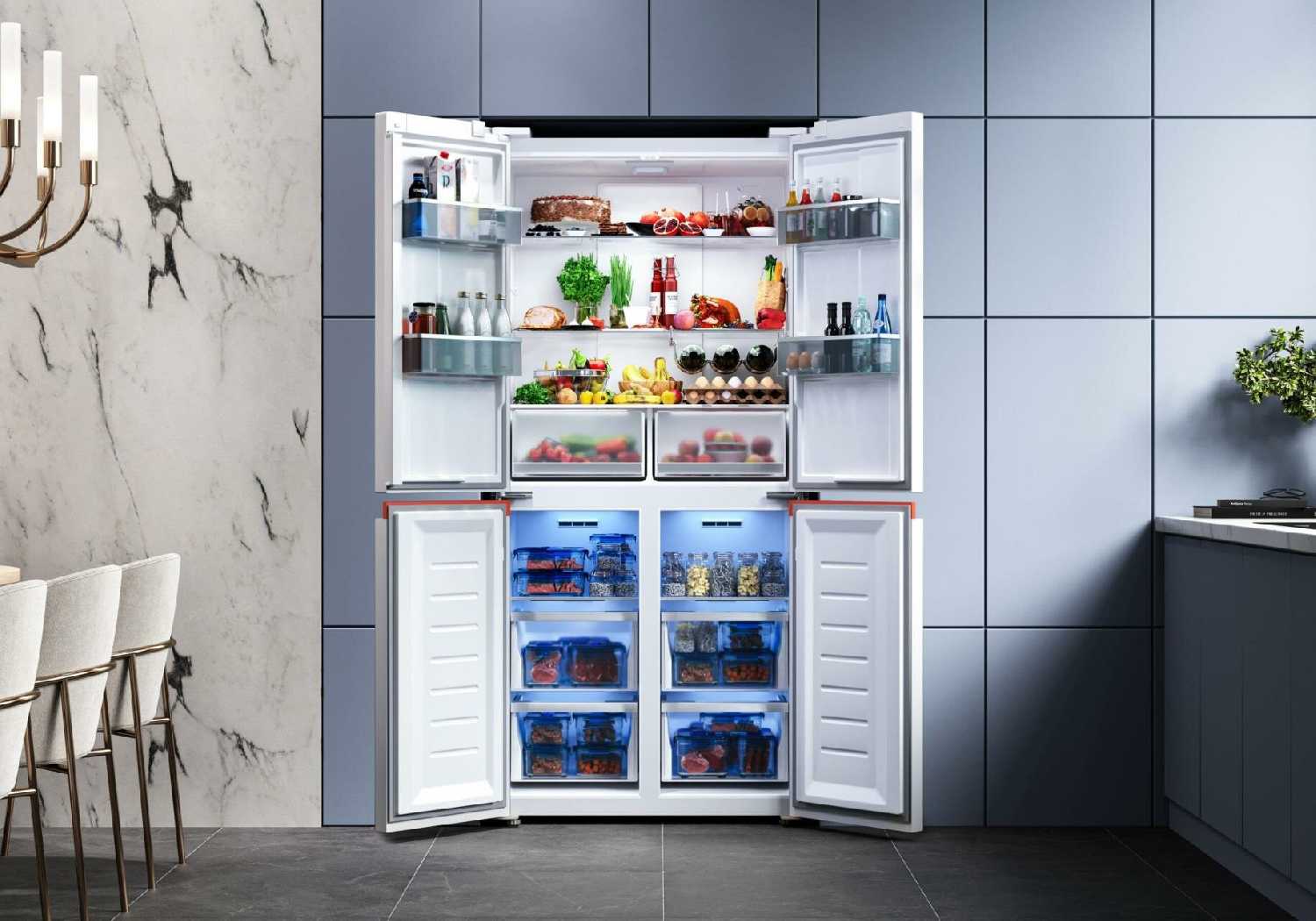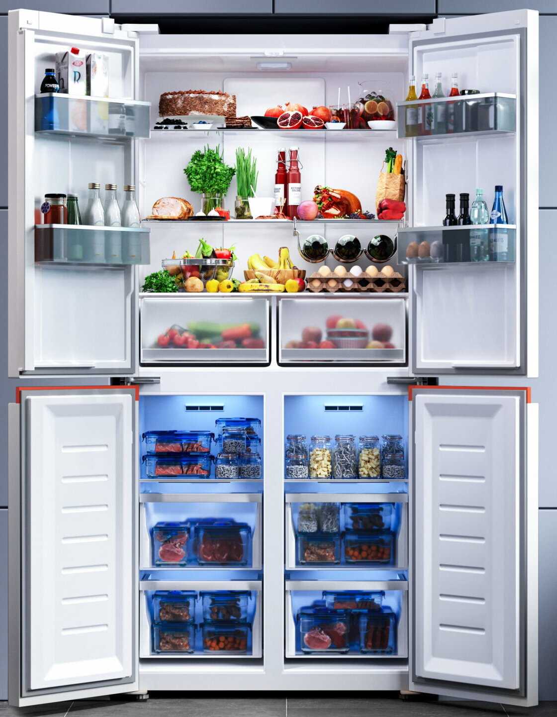 Вместительный многокамерный холодильник с технологией No Frost. Оптимальный по размерам, параметрам работы, стоимости. Работает стабильно и тихо. Продукты не портятся. В режиме суперзаморозки позволяет быстро охладить и не допустить порчи продуктов, которые долгое время пробыли в ненадлежащих условиях в магазине, на улице. Иней не образуется на стенках. Простота обслуживания и эксплуатации создает комфорт. Все полки и ящики выполнены качественно. Удобная и информативная панель управления. А еще предусмотрен интересный и полезный режим Отпуск, чтобы поддерживать нужную температуру, но не перерасходовать электричество. Мы довольны.