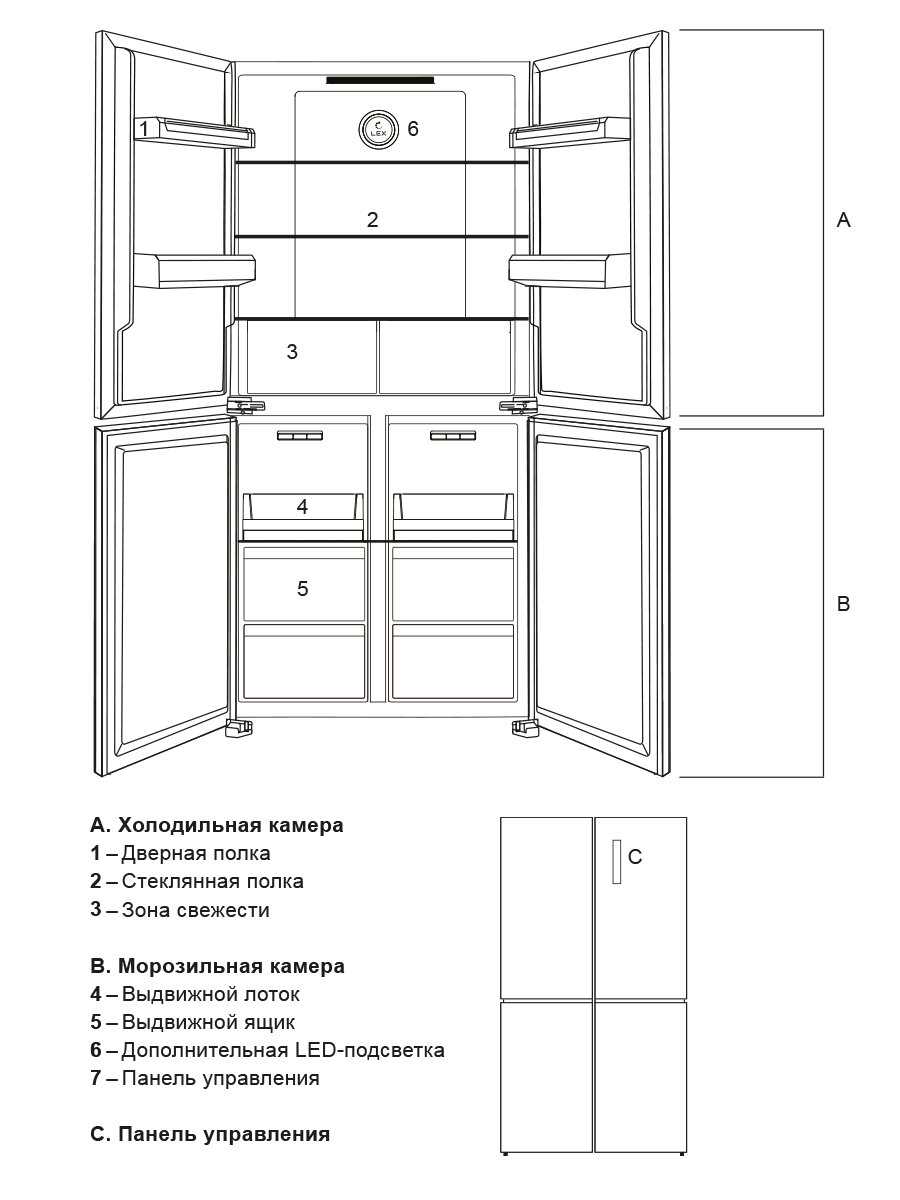 - - Если открыта только правая половина верхняя невозможно достать правый нижний ящик в верхней камере нет магнита на дверцах.