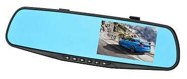 доступная стоимость, две камеры, надежное крепление, качество съемки, дизайн в виде зеркала авто, затемненная панель,