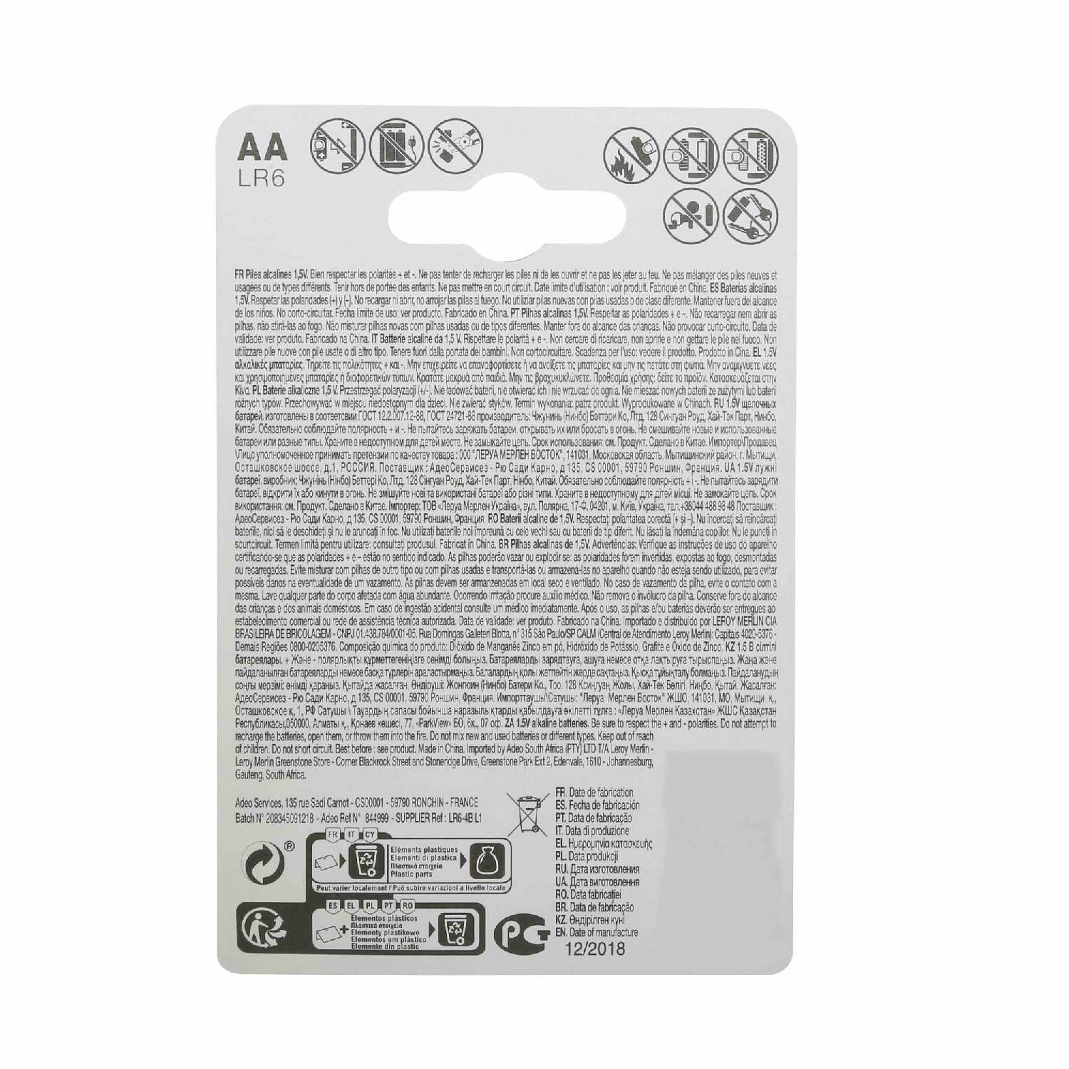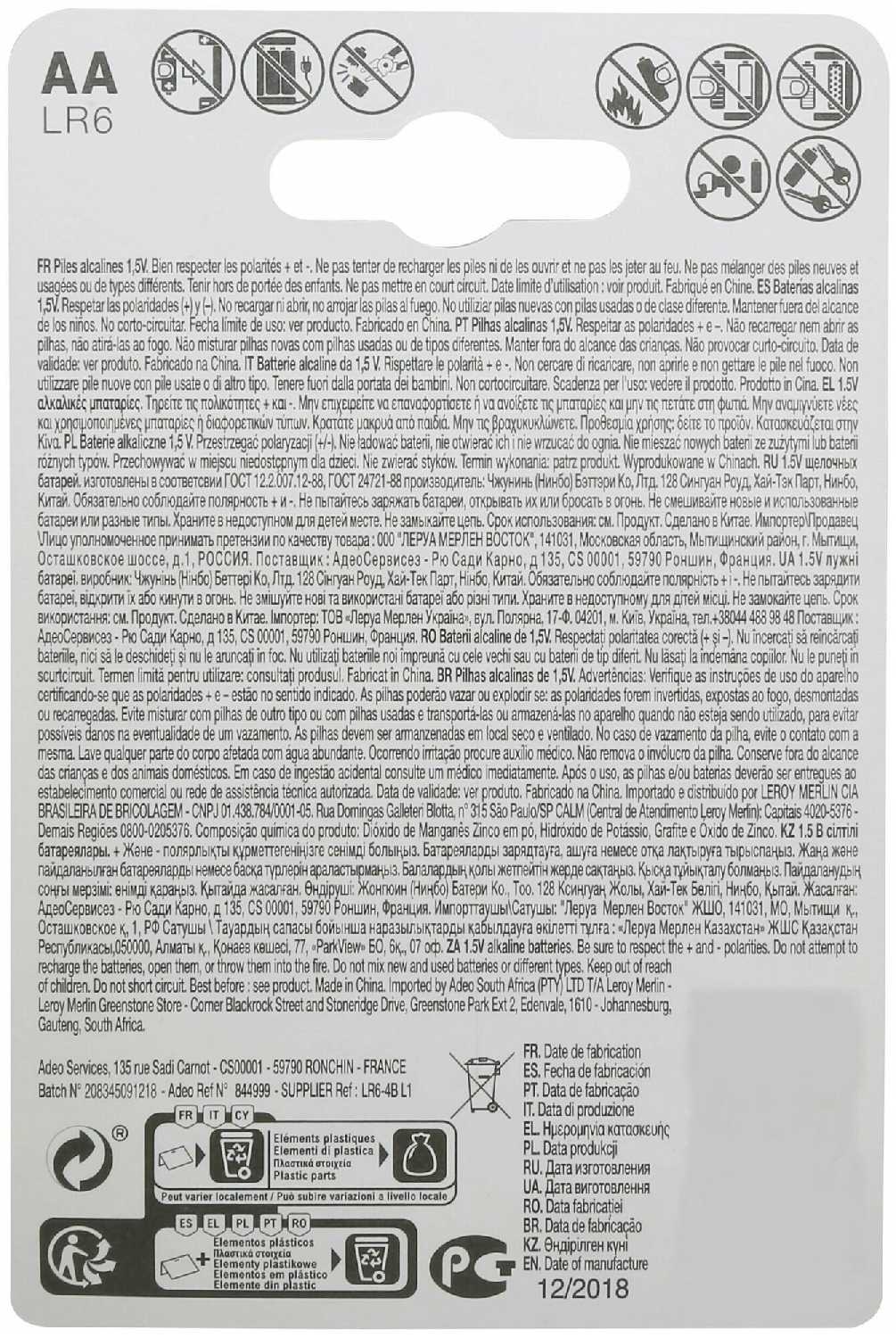 Дополнительная информация : | Батарейка алкалиновая Lexman LR6 АА 4 шт. |