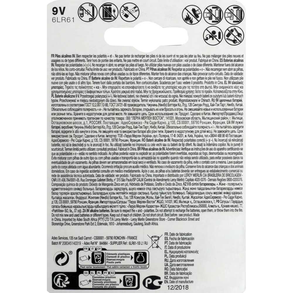 9 отзывов пользователей o Lexman Батарейка алкалиновая (6LR61)