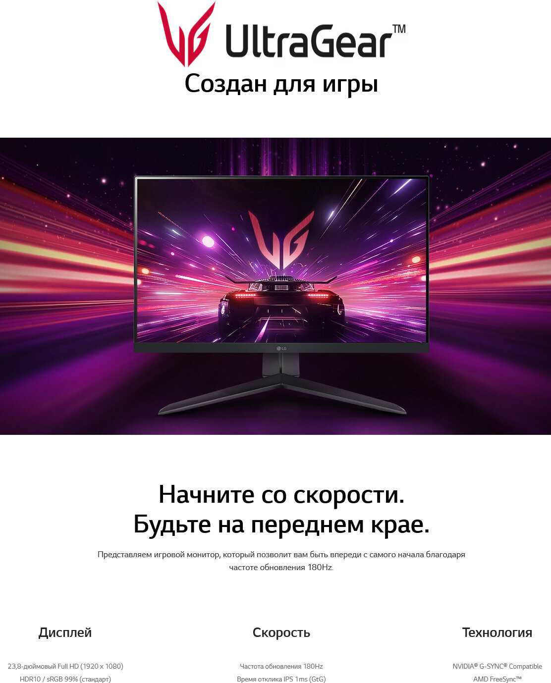 - Высокая частота обновления 180 Гц обеспечивает плавность изображения: