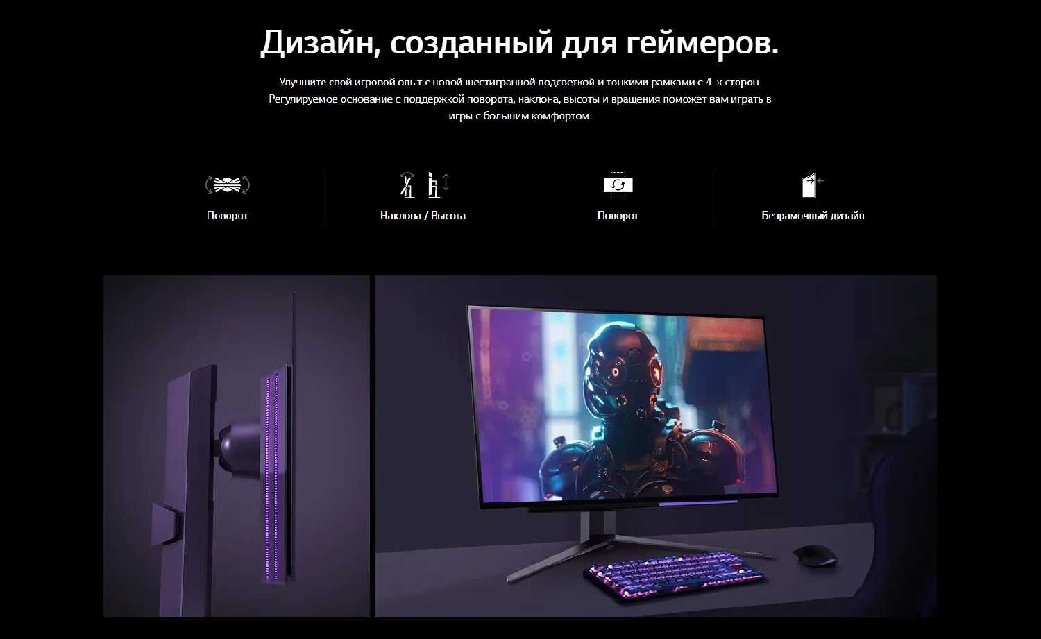 - Глубокий чёрный цвет без засветов обеспечивает беспрецедентный контраст в тёмных сценах игр и фильмов (например, в Cyberpunk 2077 или Forza Horizon 5).