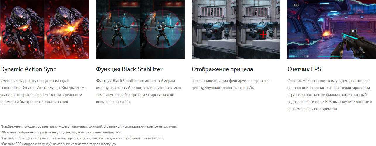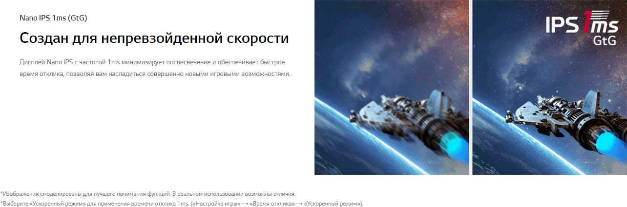 - Время отклика 1 мс (режим "Быстро") без артефактов ghosting при активации Black Stabilizer (уровень 55-65).
