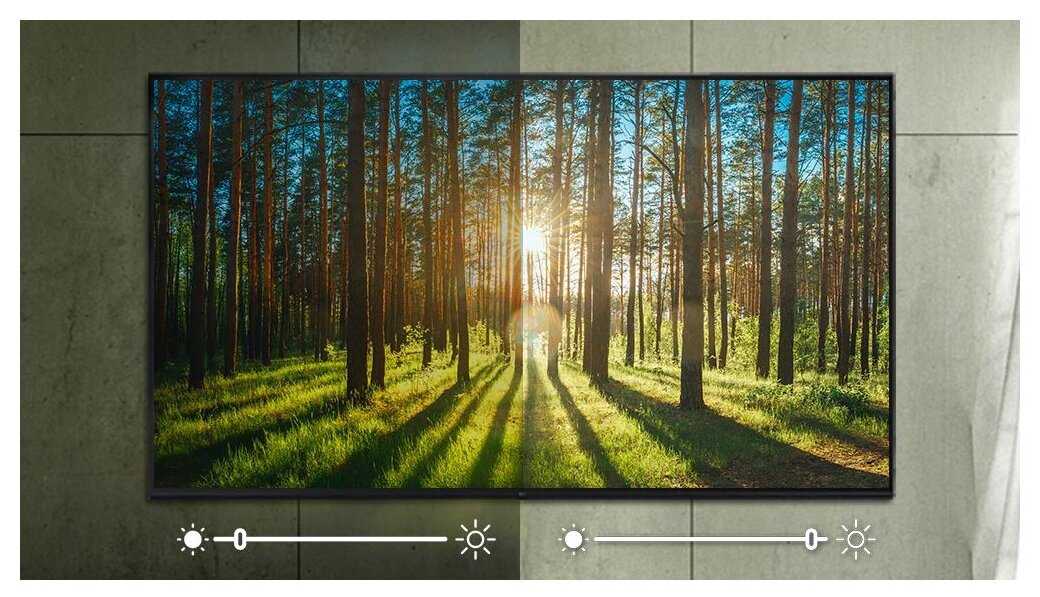 - Режим «ЭкоСенсор» автоматически корректирует яркость по освещенности комнаты, снижая энергопотребление на 25%.