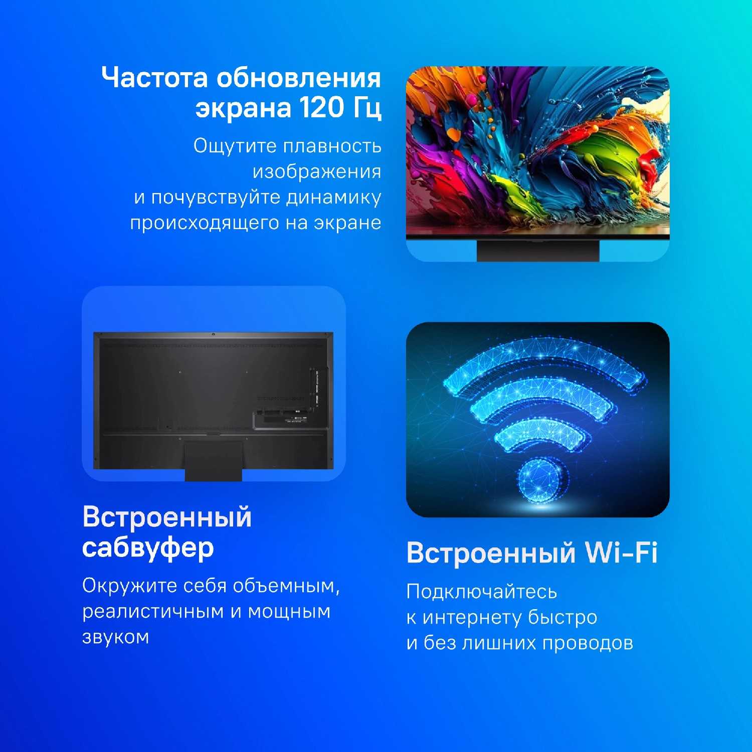 - + Смарт примочки. Хороший экран. Звук. Пульт с гироскопом и кнопкой Алисы. В заде ровный ~4.5см, жестянка.