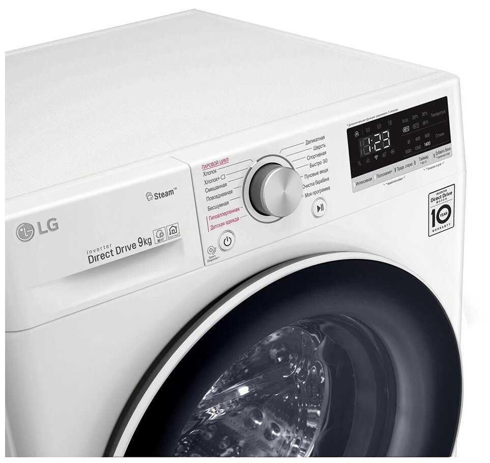 Приятная особенность - подключение к домашнему Wi-Fi роутеру и показ происходящего в мобильном приложении LG в реальном времени, включая сообщение о завершении стирки.