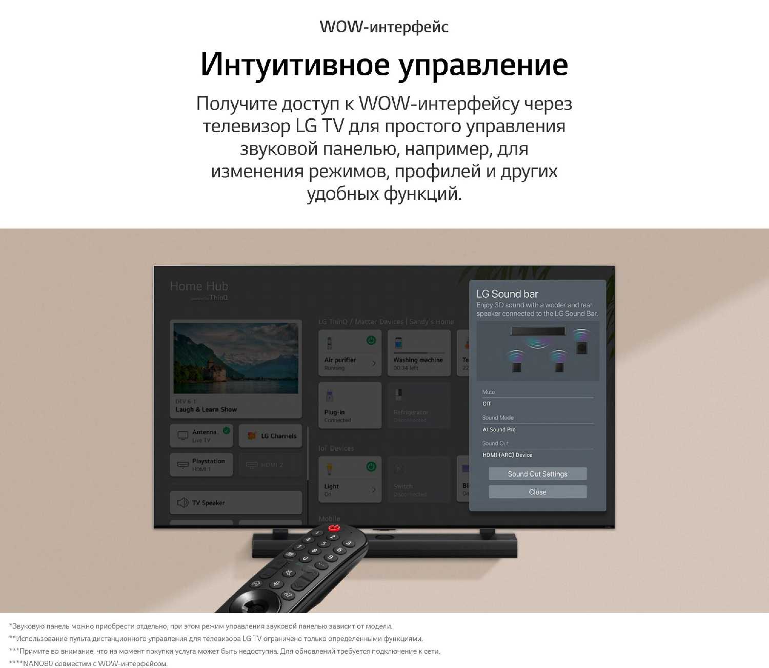 - Мобильное приложение LG ThinQ позволяет управлять ТВ, использовать браузер и настройки удаленно.
