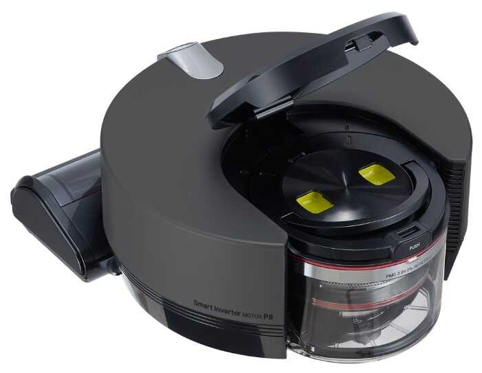 Ну а теперь про особенности. Мощный, даже шум от работы очень похож на вертикальный пылесос LG из серии CordZero. Циклон, фильтрация - все как у взрослого пылесоса.