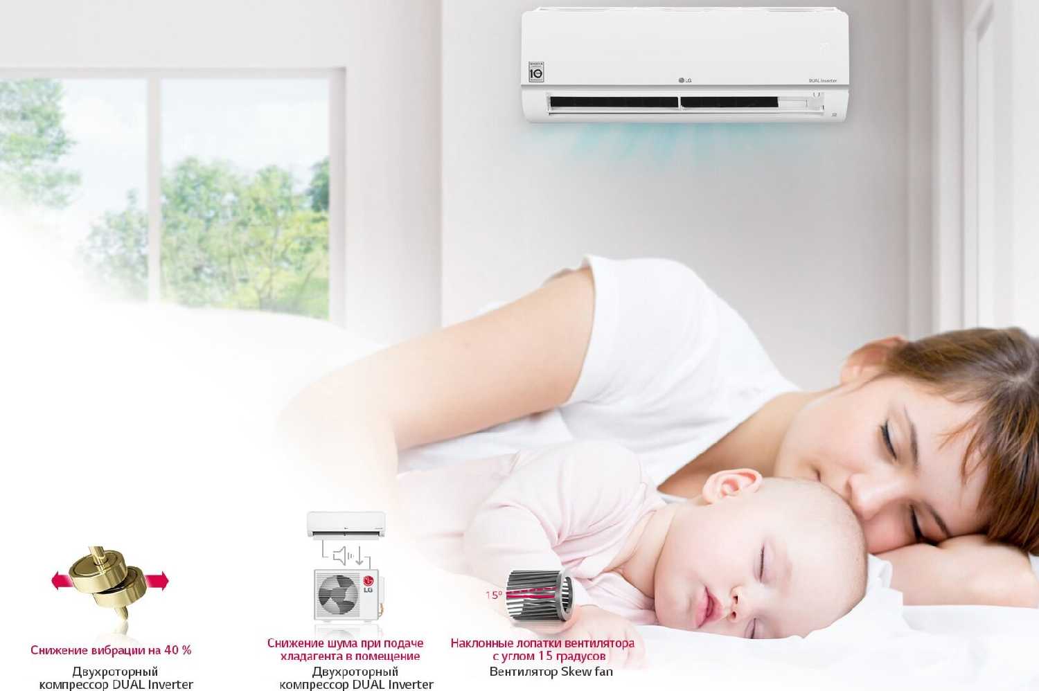 - + Отличная сплит-система с ультрафиолетовой лампой, фильтрами и управлением через Алису и Lg ThinQ. Тихая работа.