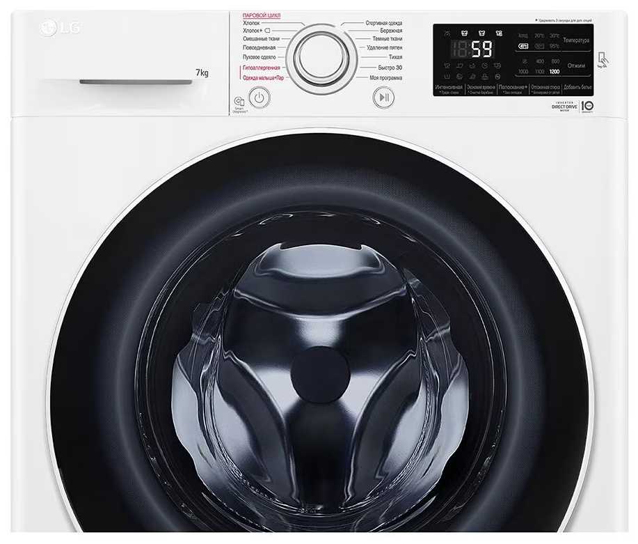 7кг и компактно, масса режимов и она белая