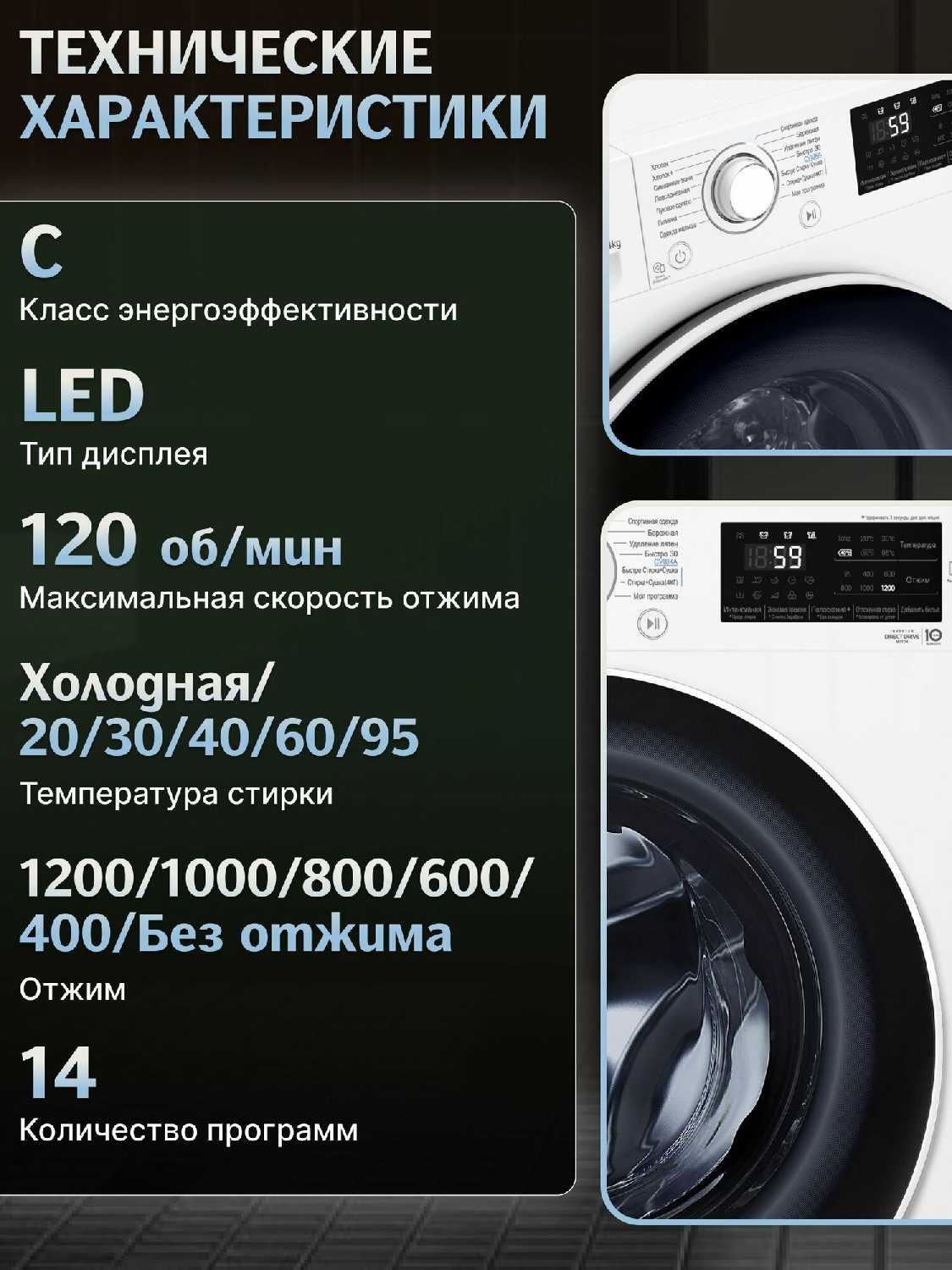 - Высокая эффективность стирки с интеллектуальным управлением: