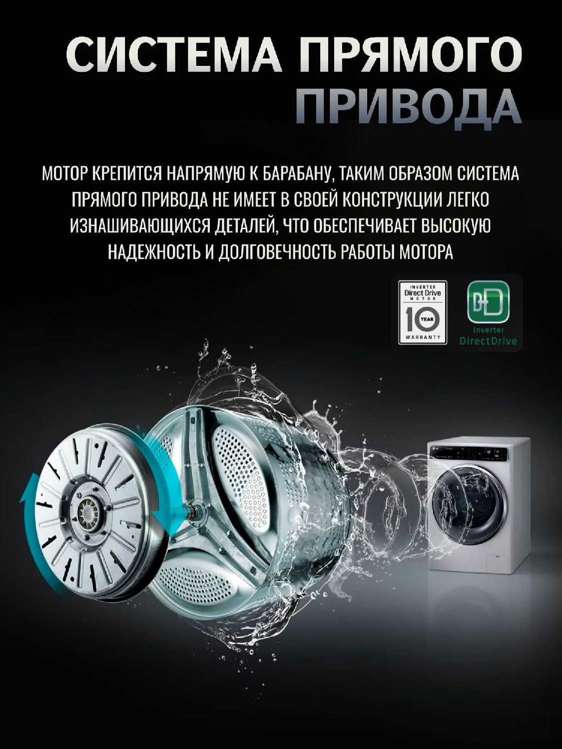 - Тихая работа благодаря инверторному мотору и балансировке: