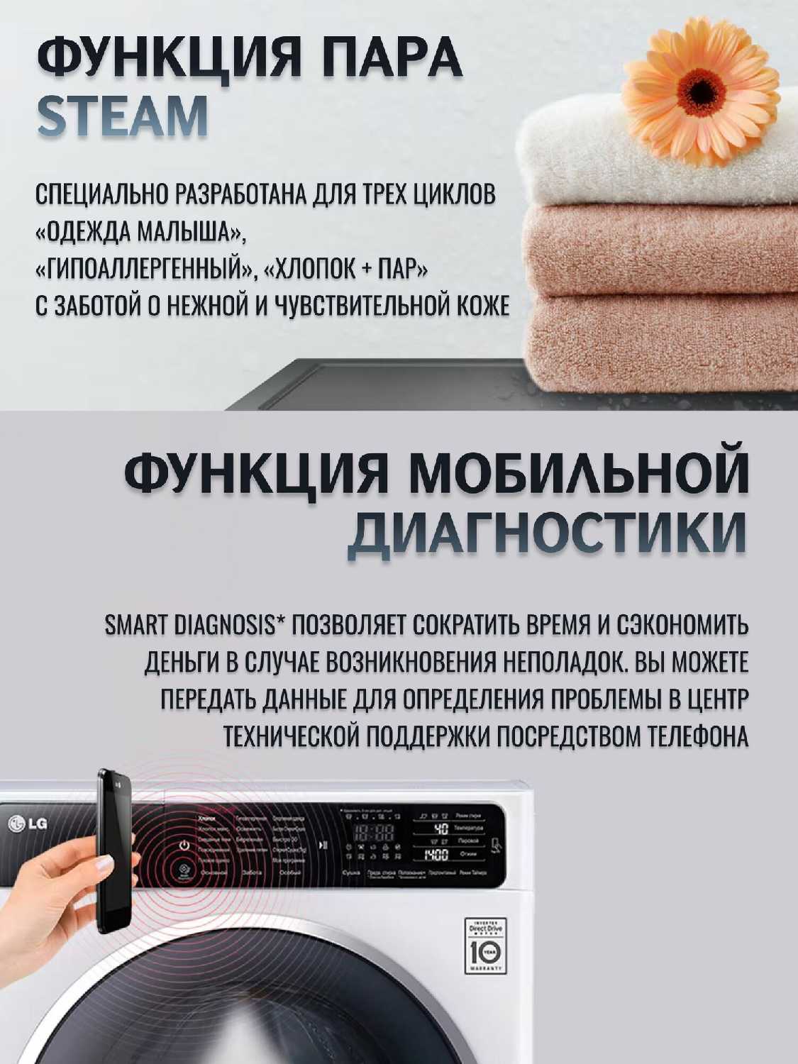 Итоговые преимущества и недостатки К сильным сторонам относятся: превосходная стирка хлопка и синтетики, эффективная быстрая стирка (30 минут), тихая работа мотора в основных режимах, удобные программы освежения одежды и качественная сборка с разборным баком. Главные недостатки — необходимость докупать антивибрационные ножки, неприемлемый запах белья после сушки, чрезмерная длительность комбинированных циклов (стирка+сушка до 4 часов) и ограниченная совместимость приложения LG ThinkQ (только Android). Для пользователей, планирующих активно использовать сушку, данная модель не рекомендуется — ее потенциал раскрывается именно как стиральной машины с опциональной, но не полноценной функцией досушивания.