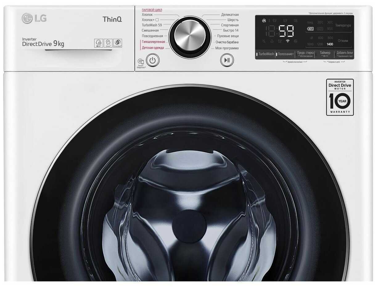 - Загрузка белья: 9 кг