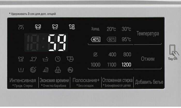 контроль баланса, отложенный старт, сигнал окончания стирки, контроль за уровнем пены, выбор скорости отжима, установка времени завершения стирки, выбор температуры стирки, интеллектуальное управление стиркой, очистка барабана