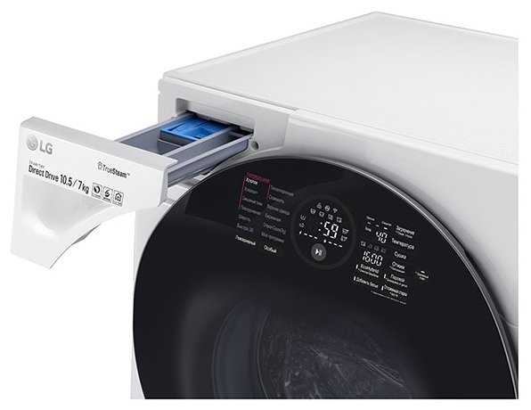 Выбирать модель новой стиралки мне долго не пришлось, это была любовь с первого взгляда. Во-первых ее дизайн идеально вписался в хоз. комнату которая напоминает космический корабль, во-вторых она полностью удовлетворяет все мои потребности по своему функционалу. Все варианты стиралок, которые имеют загрузку до 10 кг я даже не рассматривал. В этой модели загрузка до 12 кг и сушка до 8 кг. Панель управления на этой машине расположена на самой дверце и это наверное первое, что бросилось мне в глаза. Панель срабатывает от легкого прикосновения, поэтому во время работы я всегда блокирую ее чтобы случайно не сбить настройки.При запуске большинства программ машина взвешивает белье и на этом основании рассчитывает время работы. Лоток для порошка довольно большой, в основном за счет своей длины. Меня особенно радует, что после стирки он идеально чистый, никаких следов порошка не остается на стенках, старая машинка этим грешила. Не буду описывать каждую программу отдельно, здесь все и так предельно ясно. Все программы рассчитанные на стирку хлопка и повседневной одежды имеют довольно большую продолжительность от 2 часов и более, зависит от веса белья и выбранных дополнительных функций. Я часто использую программу Смешанные ткани, на ней цикл от 1.5 часов. Единственный короткий цикл это Быстро 30, но он рассчитан на маленькую загрузку с легким загрязнением. Качество стирки очень хорошее на всех программах, даже при максимальной загрузке барабана все отстирывается и что не мало важно прополаскивается на 5 баллов. Обработка паром здесь в 2 вариантах: во время стирки и после окончания цикла сушки, можно выбрать сразу оба. После сушки эта функция придает мягкость одежде, особенно заметно на махровых полотенцах и пледах. По сушке есть один нюанс, о котором написано даже в инструкции, что после сушки темного белья нельзя стирать светлое и наоборот. Как-то я постирал темные вещи после сушки светлых и на одной из футболок действительно был виден ворс, но я его убрал роликом, так что обошлись малыми потерями)) Есть ещё крутая фишка - это приложение приложение Smart ThinQ. Это приложение дает возможность управлять стиральной машиной удаленно, следить за оставшимся временем и изменять режим. О том что моя машина закончила стирку я узнаю даже находясь далеко за пределами дома, например в магазине. В приложении есть уже готовые программы стирки (в приложении есть ещё 26 программ стирки). В итоге, я очень доволен качеством ее работы и особенно тому, что конструкция для сушки белья в моей квартире теперь выставляется крайне редко и по особым случаям))